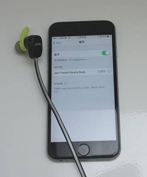 藍牙配對很簡單,打開電源後,藍牙清單上面就有Jam Transit Fitness Buds的耳機清單,點選該耳機清單即完成連線