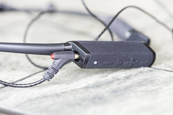 可是我發現Ultimate Ears TF10耳道式耳機的耳機線實在是太粗了,很難放進Gravity藍牙耳機的頸帶凹槽中,不過就算沒有把耳機線塞進頸帶凹槽中也無妨,可以用頸帶後方的「線材管理系統」把多餘的耳機線整理好。
